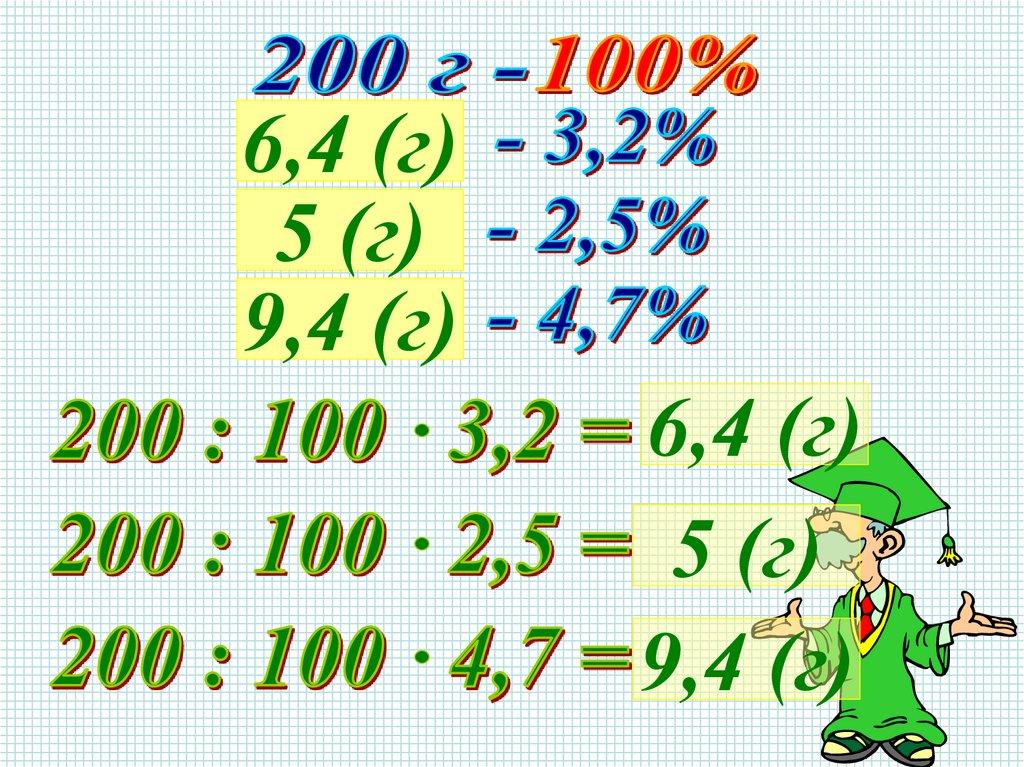 На пакете молока написано, что в молокесодержится 3,2% жира, 2,5% белка и