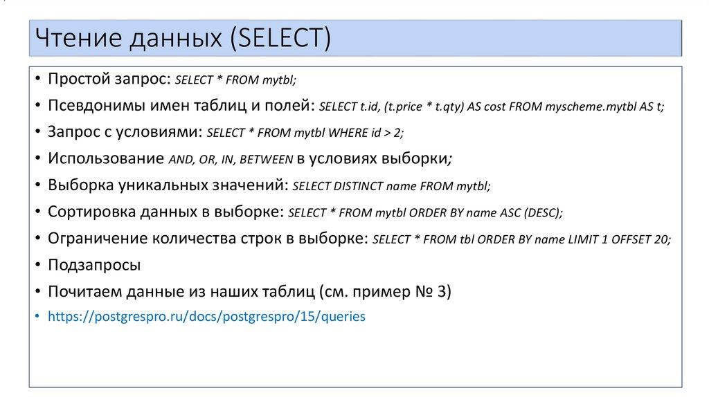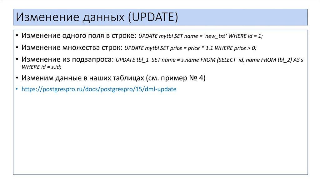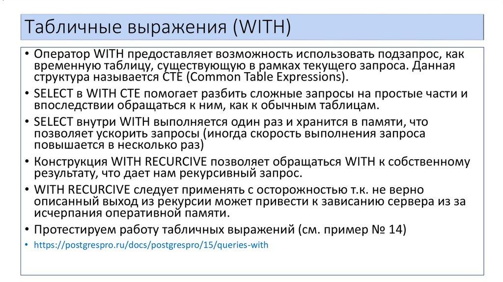 • https://postgrespro.ru/docs/postgrespro/15/queries-with