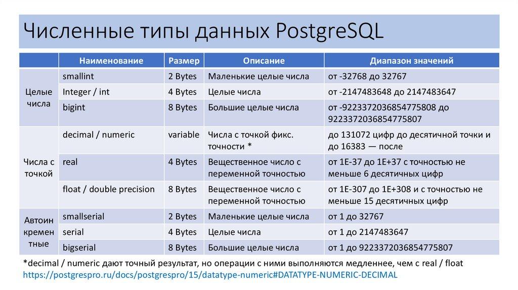 https://postgrespro.ru/docs/postgrespro/15/datatype-numeric#DATATYPE-NUMERIC-DECIMAL
