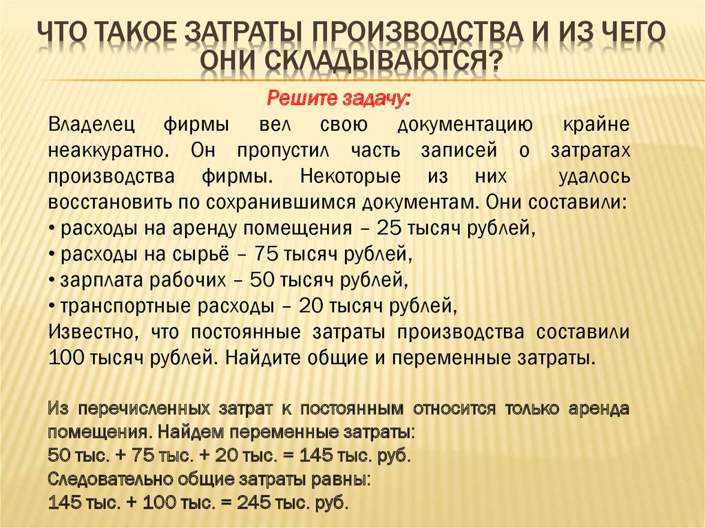 ЧТО ТАКОЕ ЗАТРАТЫ ПРОИЗВОДСТВА И ИЗ ЧЕГООНИ СКЛАДЫВАЮТСЯ?