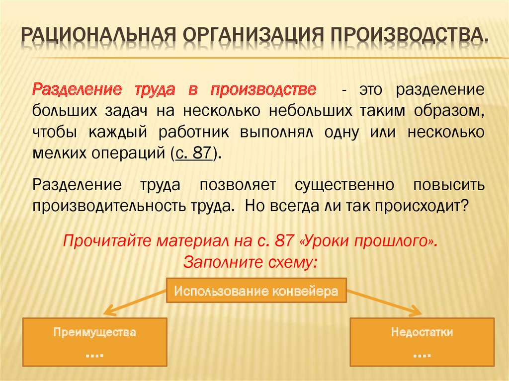 РАЦИОНАЛЬНАЯ ОРГАНИЗАЦИЯ ПРОИЗВОДСТВА.Разделение труда в производстве - это разделение