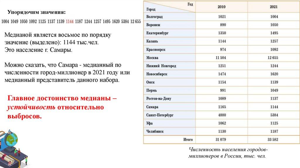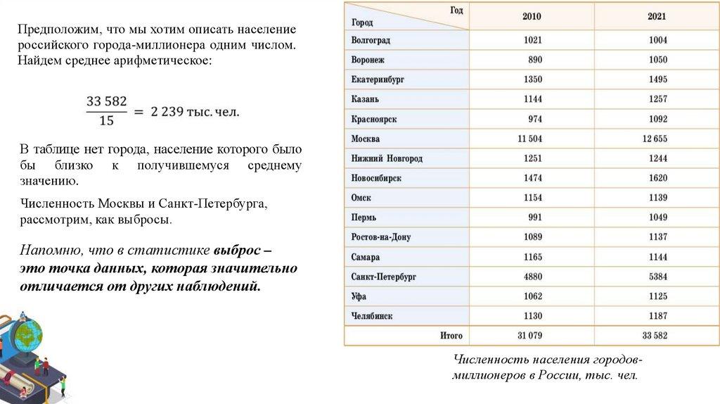 Предположим, что мы хотим описать населениероссийского города-миллионера одним числом.