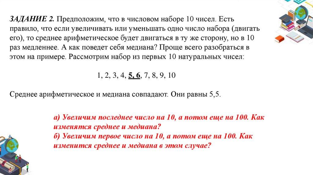 ЗАДАНИЕ 2. Предположим, что в числовом наборе 10 чисел. Естьправило, что если увеличивать или уменьшать одно число набора (двигать
