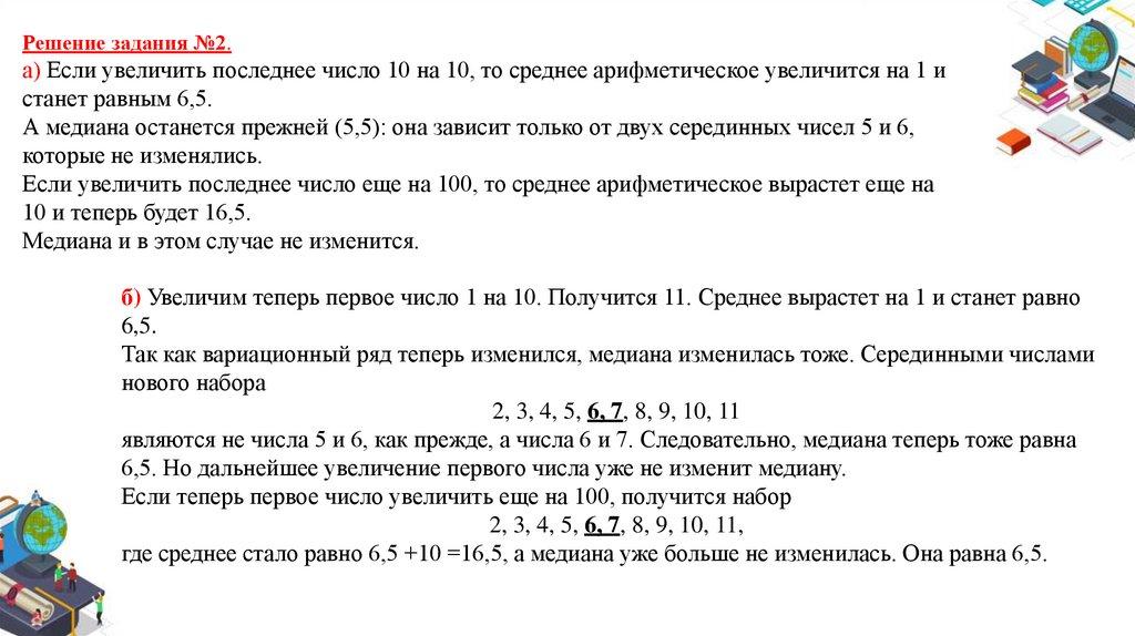 Решение задания №2.а) Если увеличить последнее число 10 на 10, то среднее арифметическое увеличится на 1 и