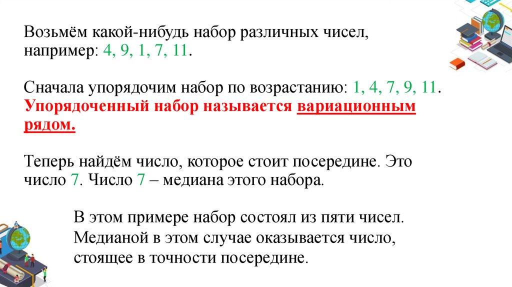 Медианой набора чисел называется такое число, которое