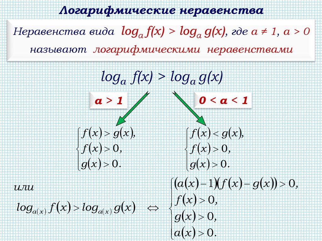 Логарифмические неравенстваНеравенства вида loga f(x) > logа g(х), где а ≠ 1, a > 0