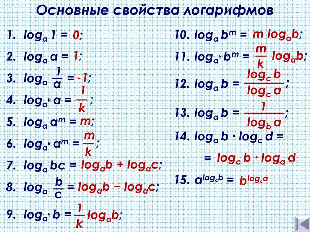 logab = c, ac = b; а ≠ 1, a > 0, b > 0