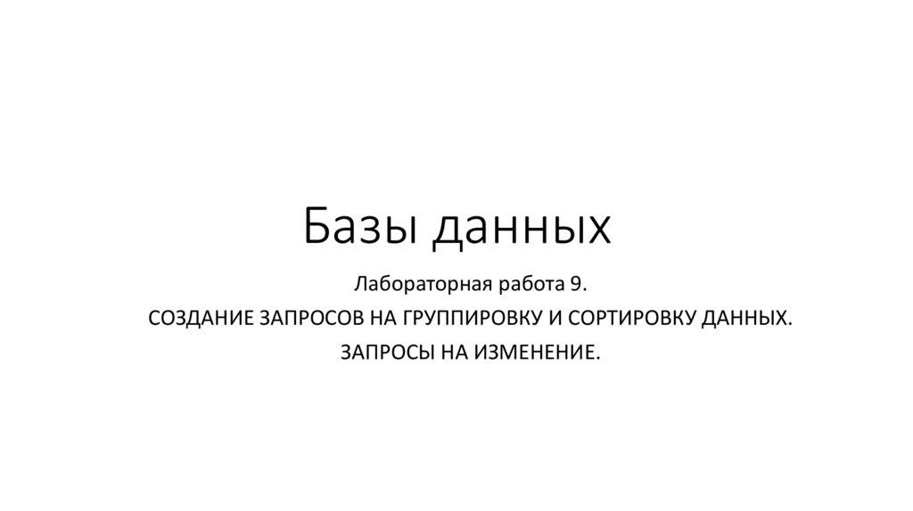 Создание запросов на группировку и сортировку данных. Запросы на изменение