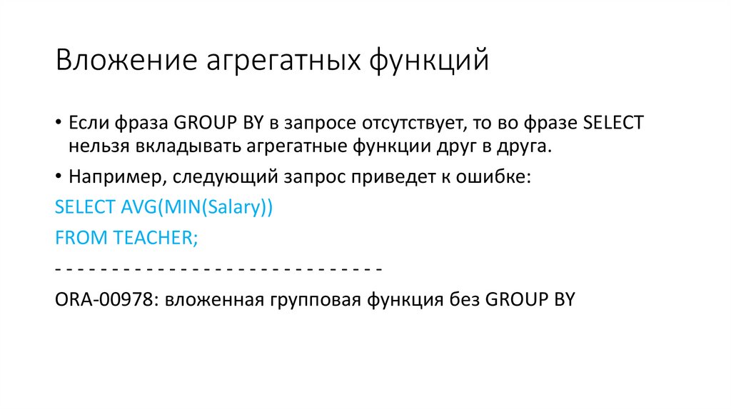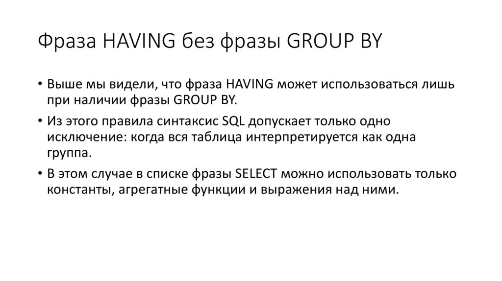 • В этом случае во фразе SELECT также можно использовать