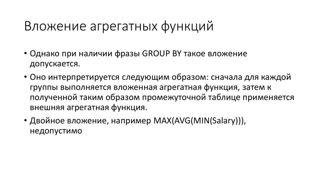 • В этом случае и действие агрегатных функций, указанных во