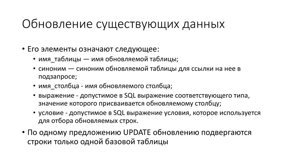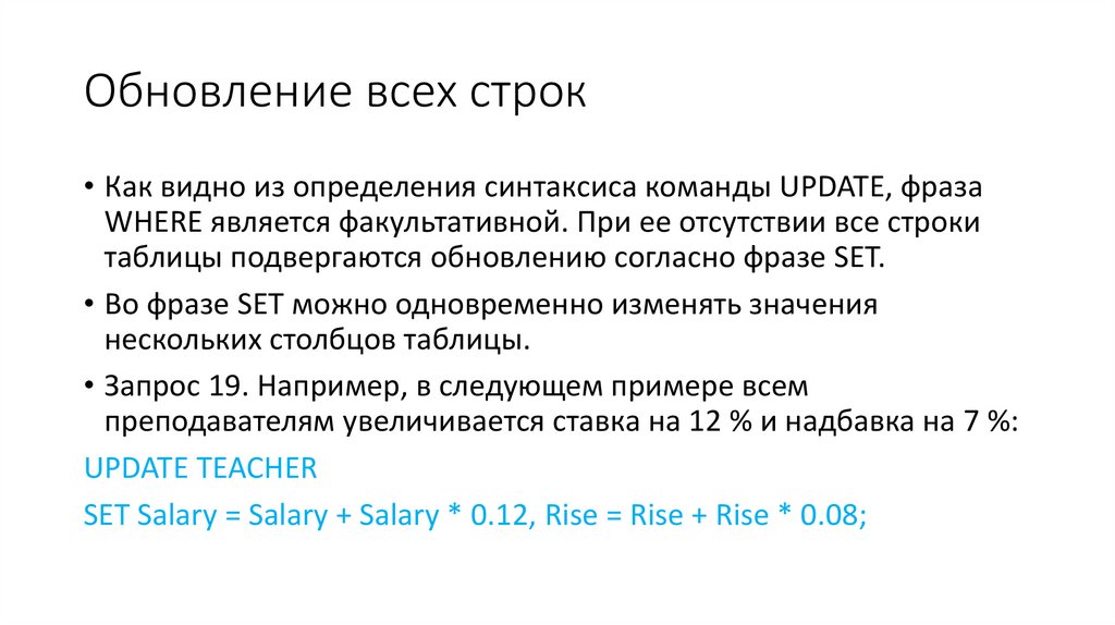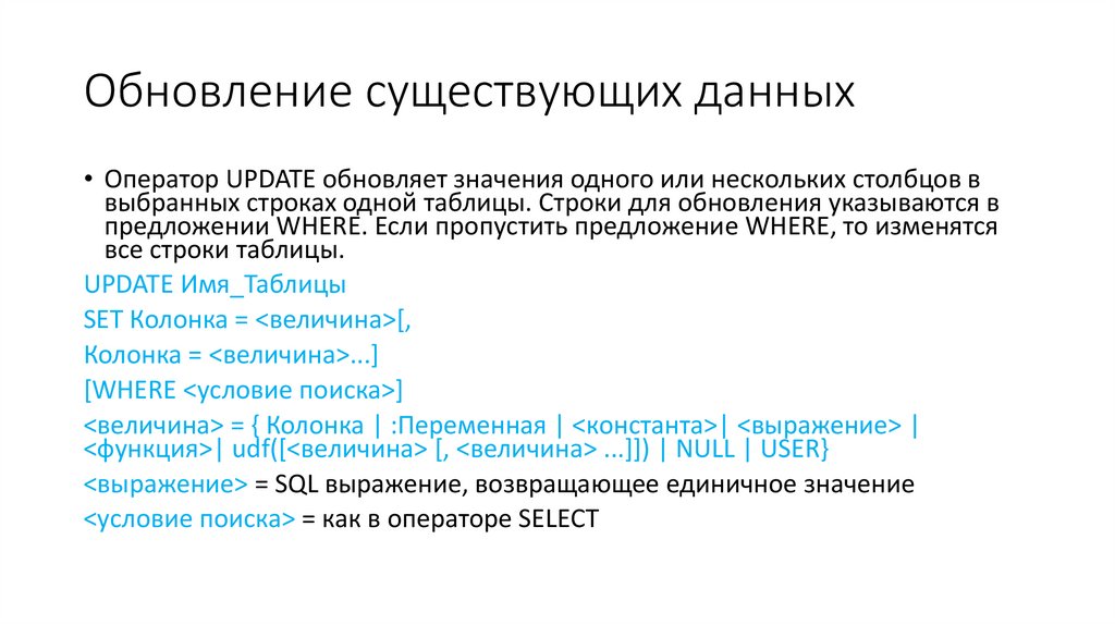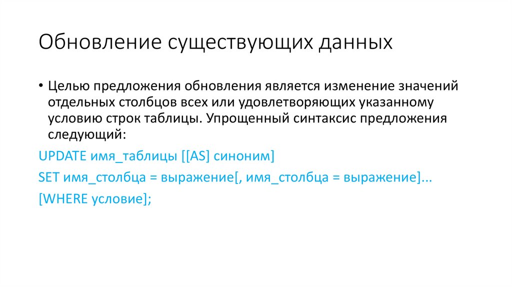 предложение UPDATE);