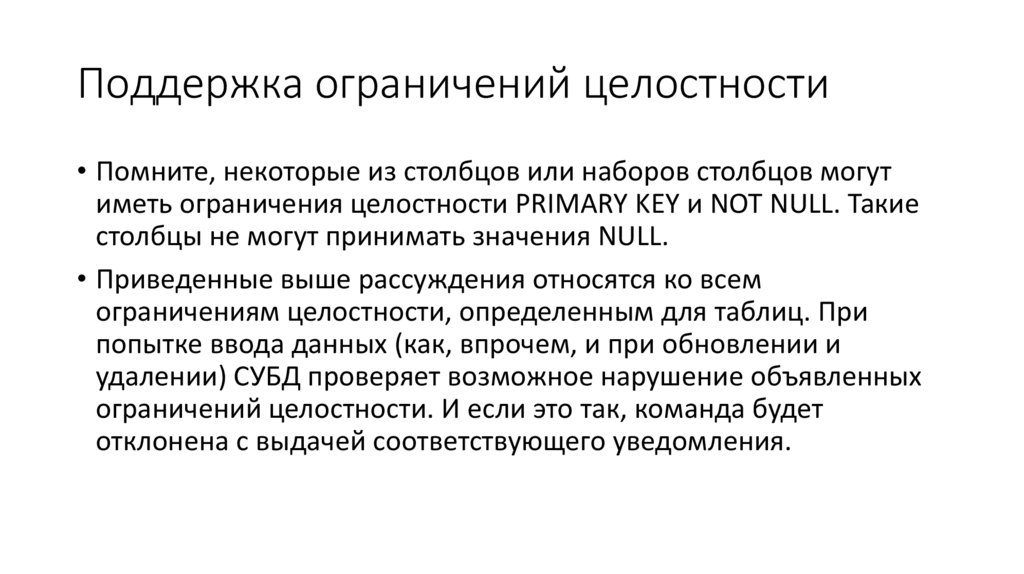 ограничения целостности;