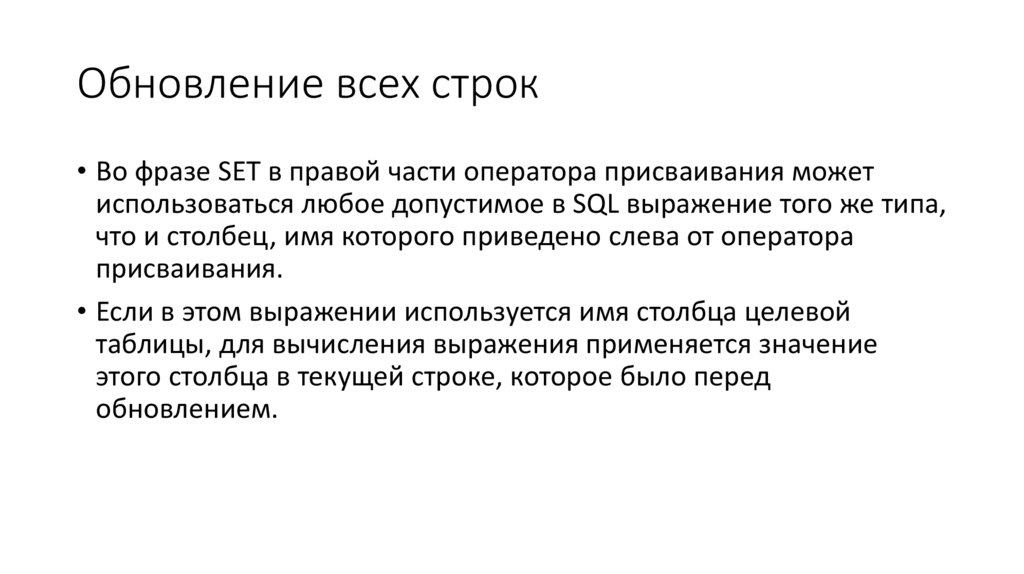 выражения с использованием значений обновляемой строки.