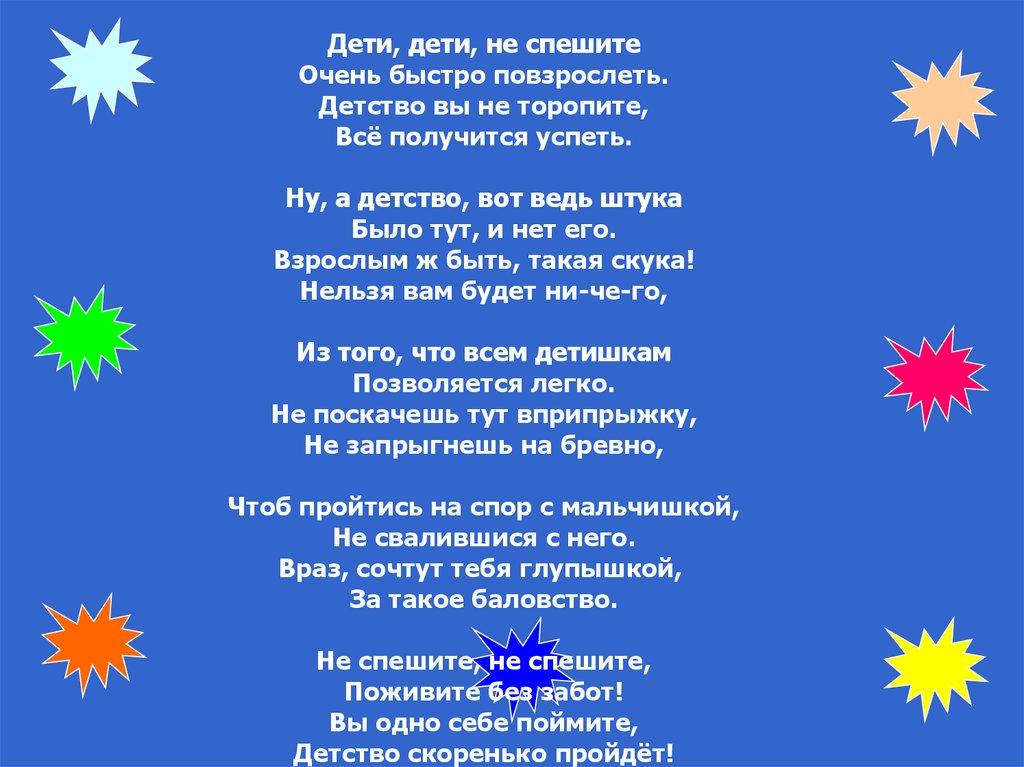 Дети, дети, не спешитеОчень быстро повзрослеть.