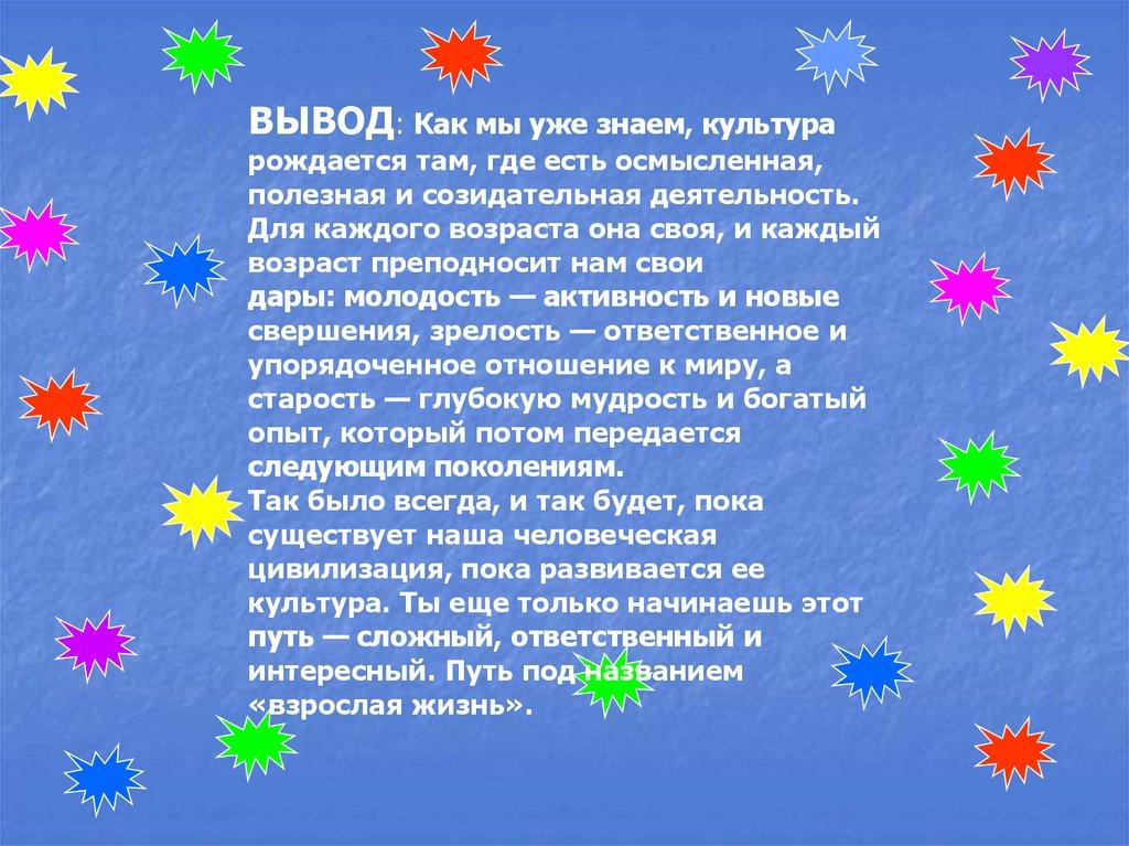 ВЫВОД: Как мы уже знаем, культурарождается там, где есть осмысленная,