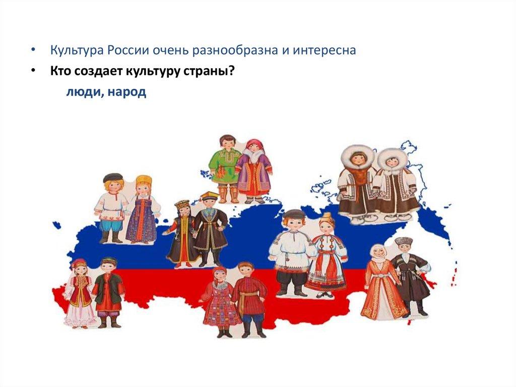 • Культура России очень разнообразна и интересна• Кто создает культуру страны?
