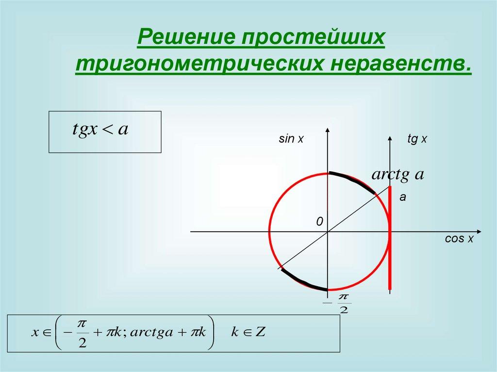 решению простейших неравенств вида: