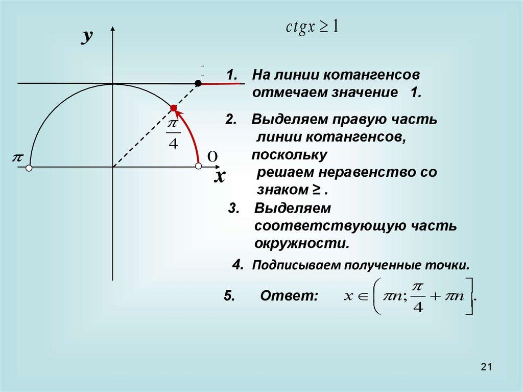 1 1. На линии котангенсов