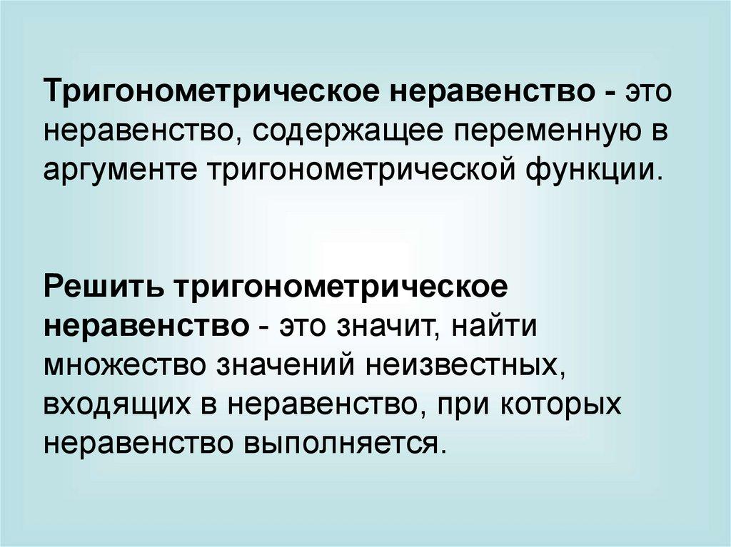 Тригонометрическое неравенство - этонеравенство, содержащее переменную в