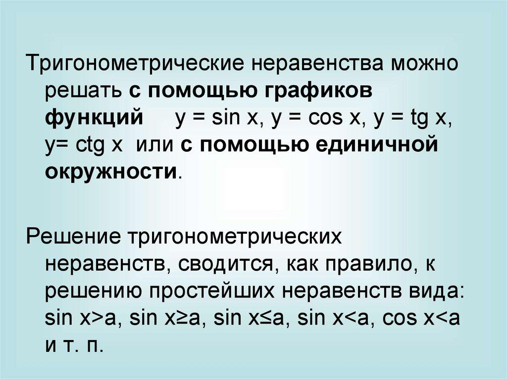 Тригонометрические неравенства можнорешать с помощью графиков