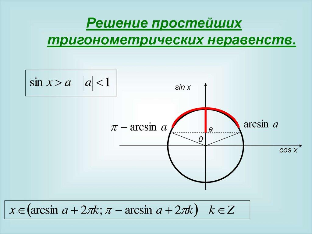 Решение простейшихтригонометрических неравенств.