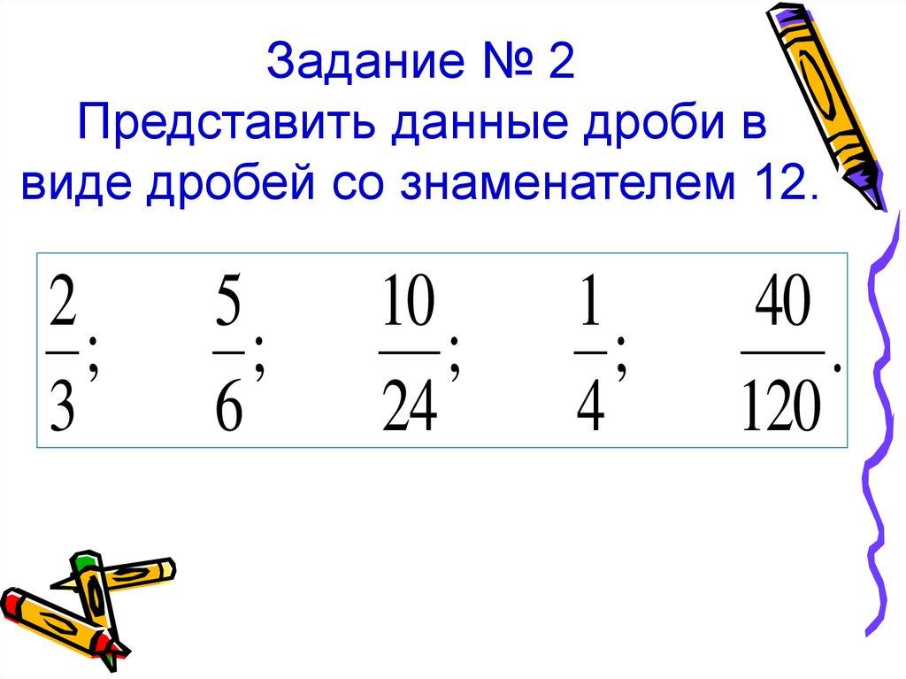 Задание № 2Представить данные дроби в