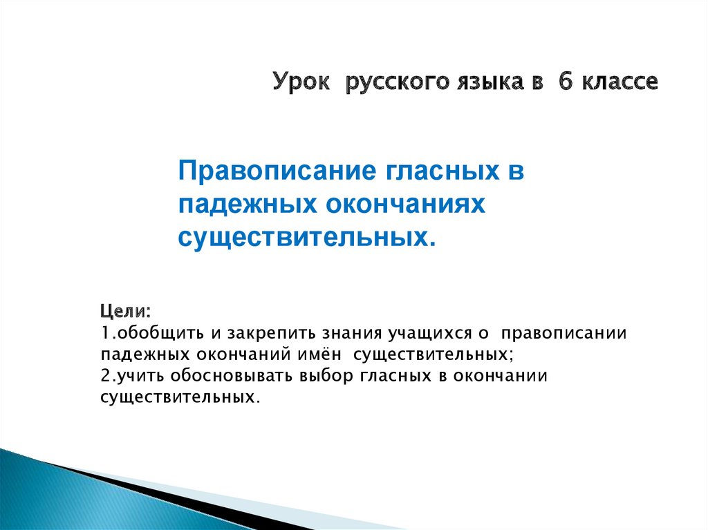 Правописание гласных в падежных окончаниях существительных. 6 класс