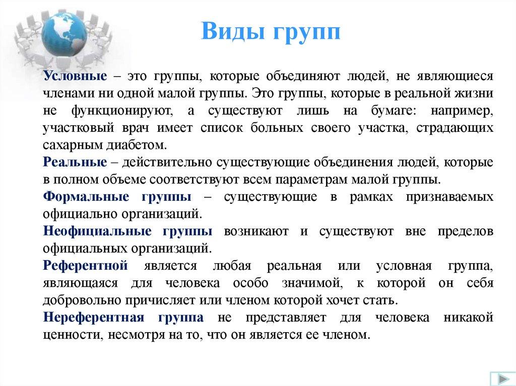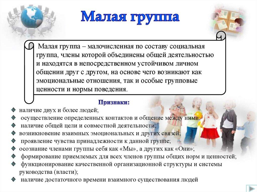 Малая группа – малочисленная по составу социальнаягруппа, члены которой объединены общей деятельностью
