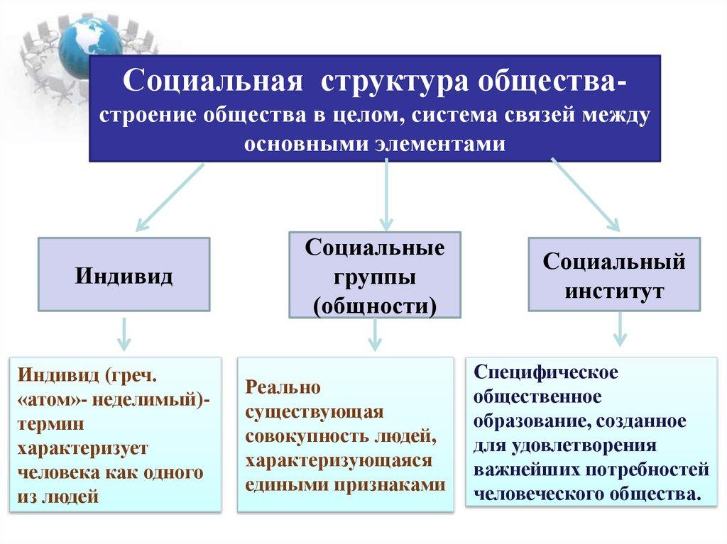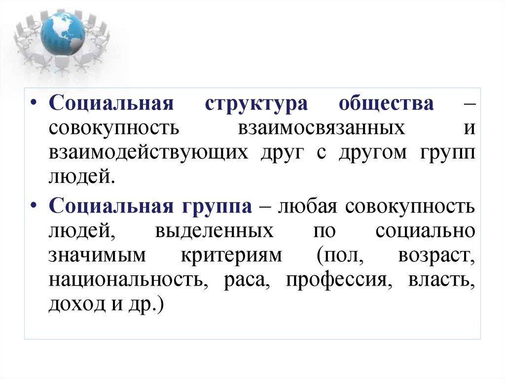 Социальная структура обществастроение общества в целом, система связей междуосновными элементами