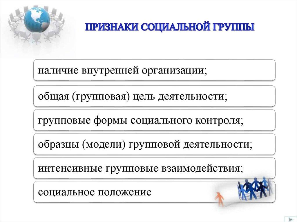 наличие внутренней организации;общая (групповая) цель деятельности;