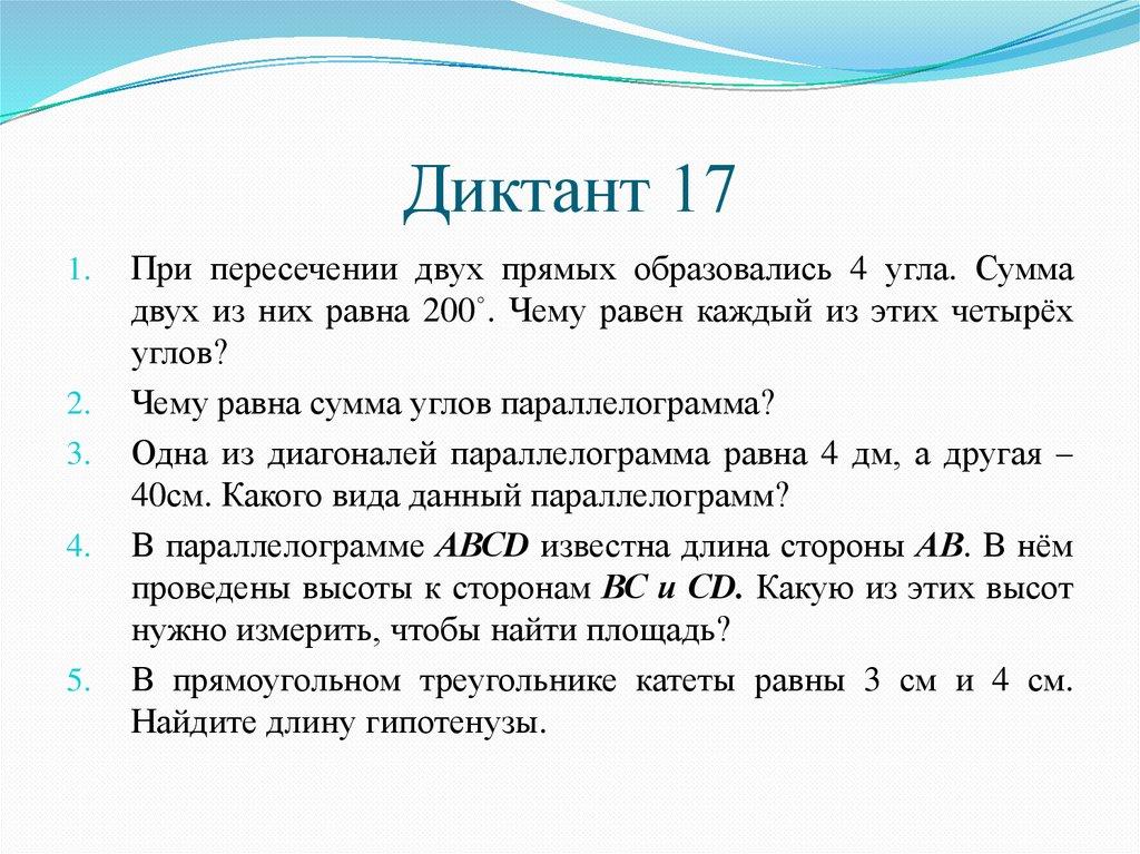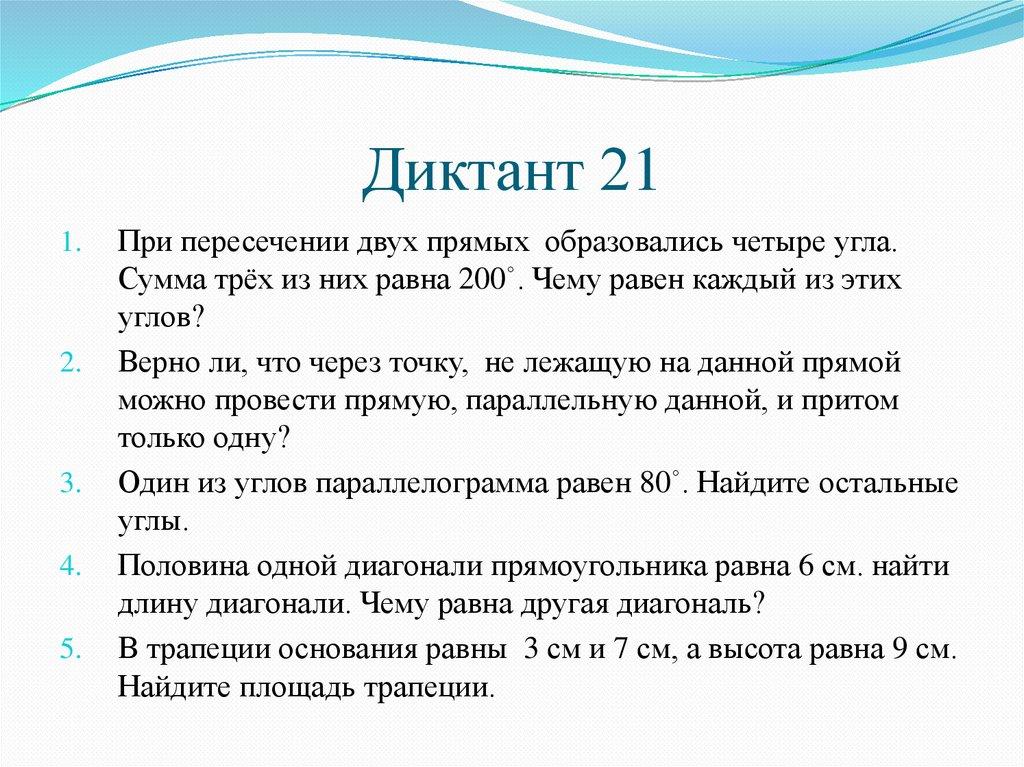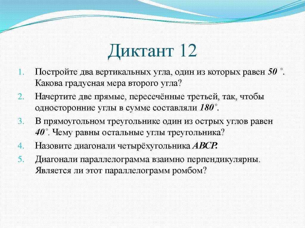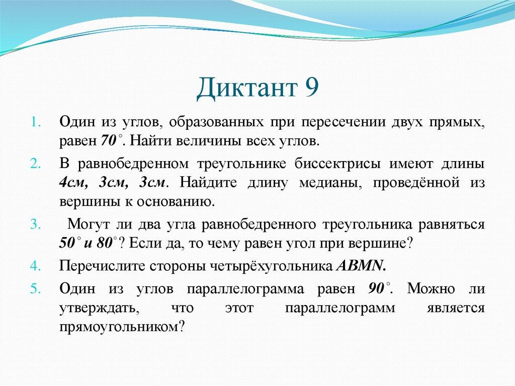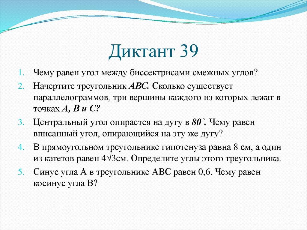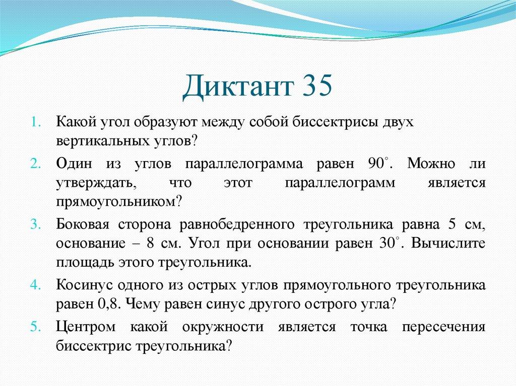 Диктант 351. Какой угол образуют между собой биссектрисы двух