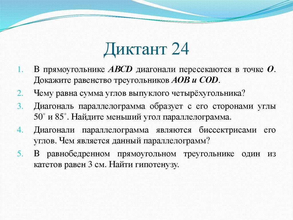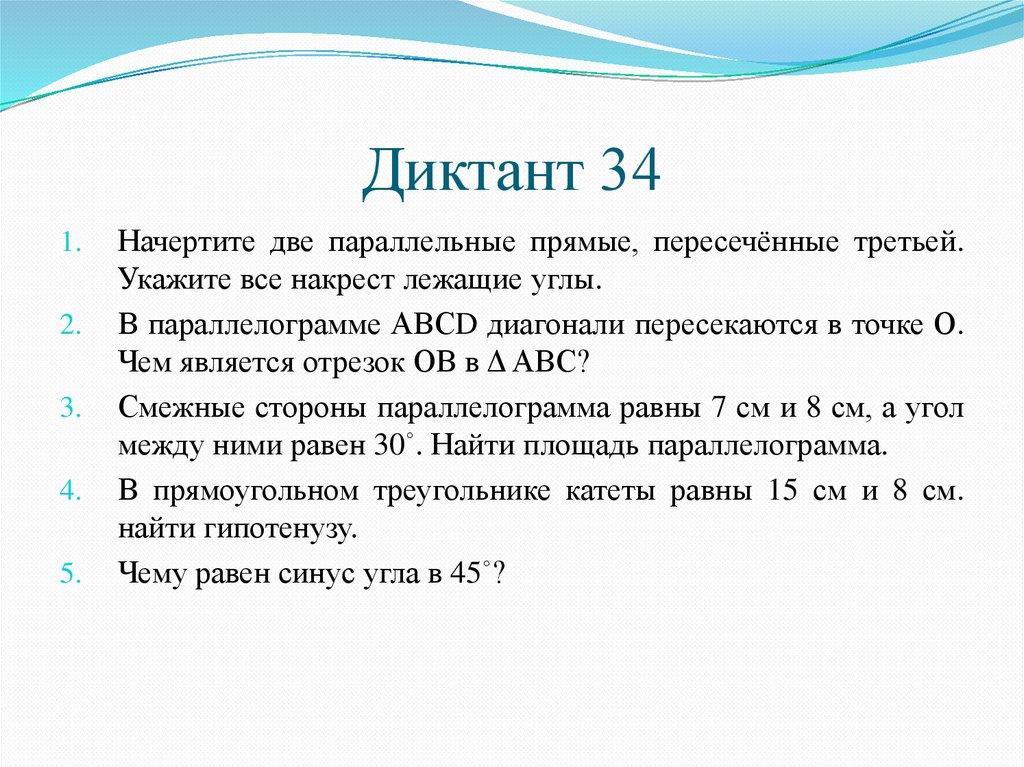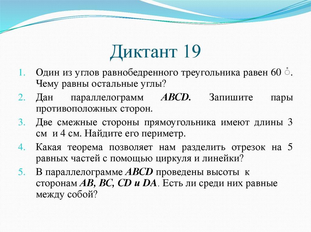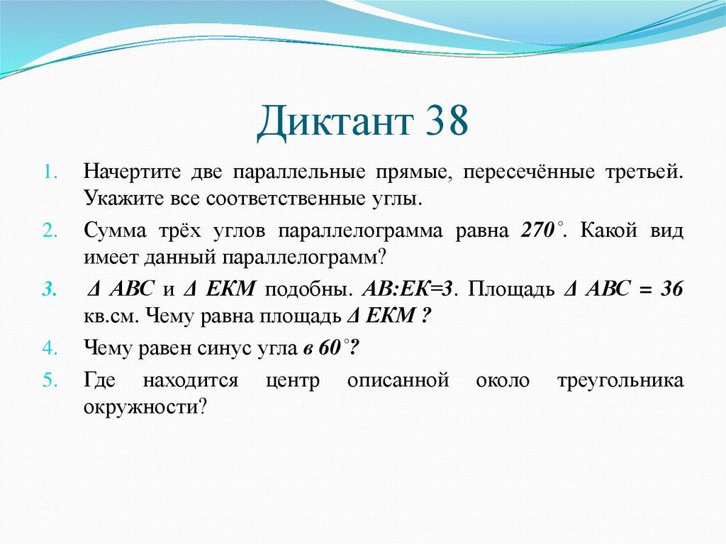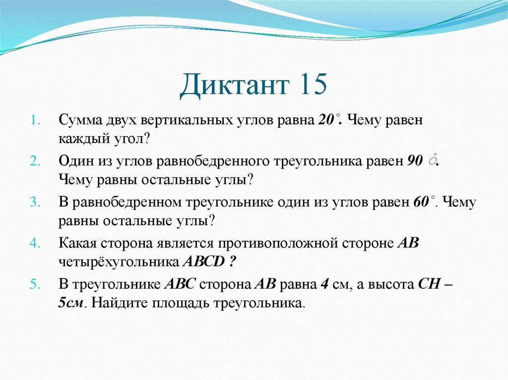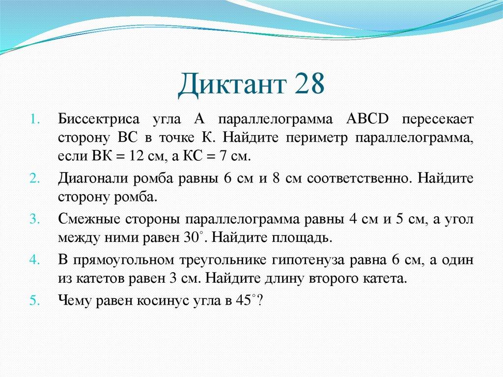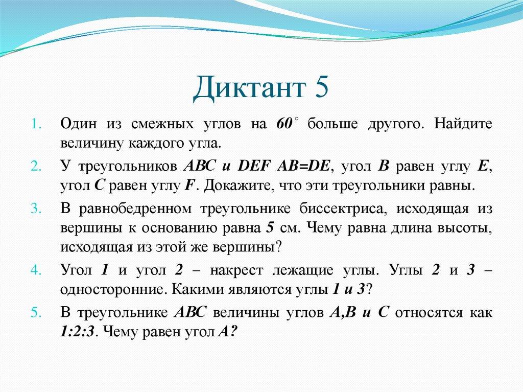 Диктант 351. Какой угол образуют между собой биссектрисы двух