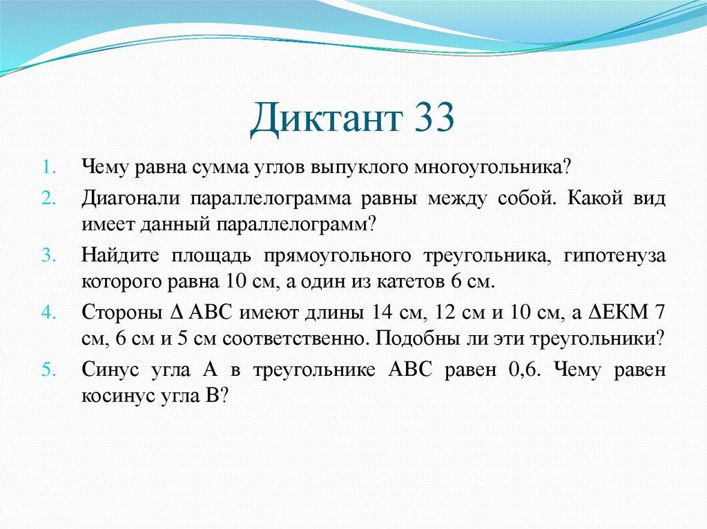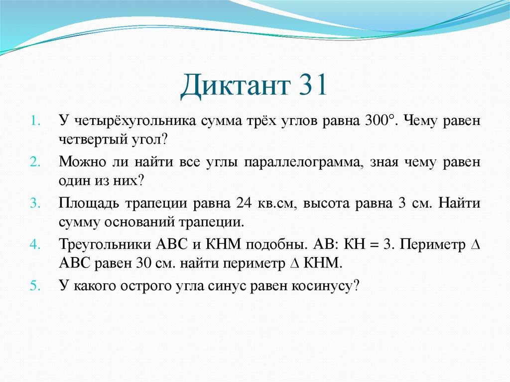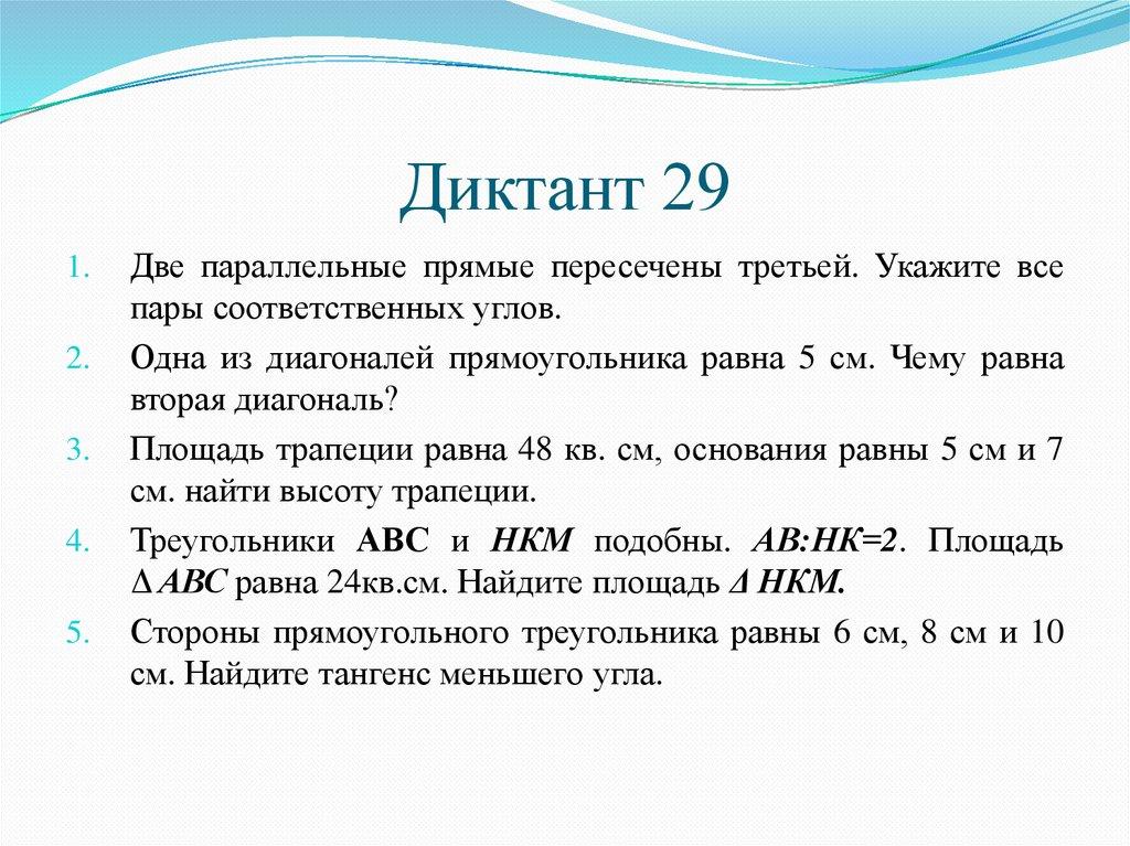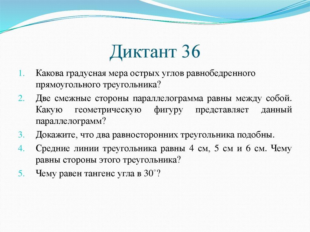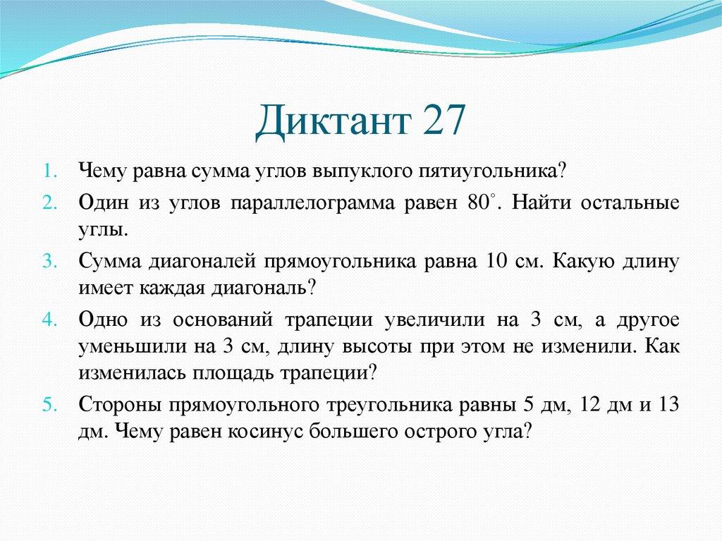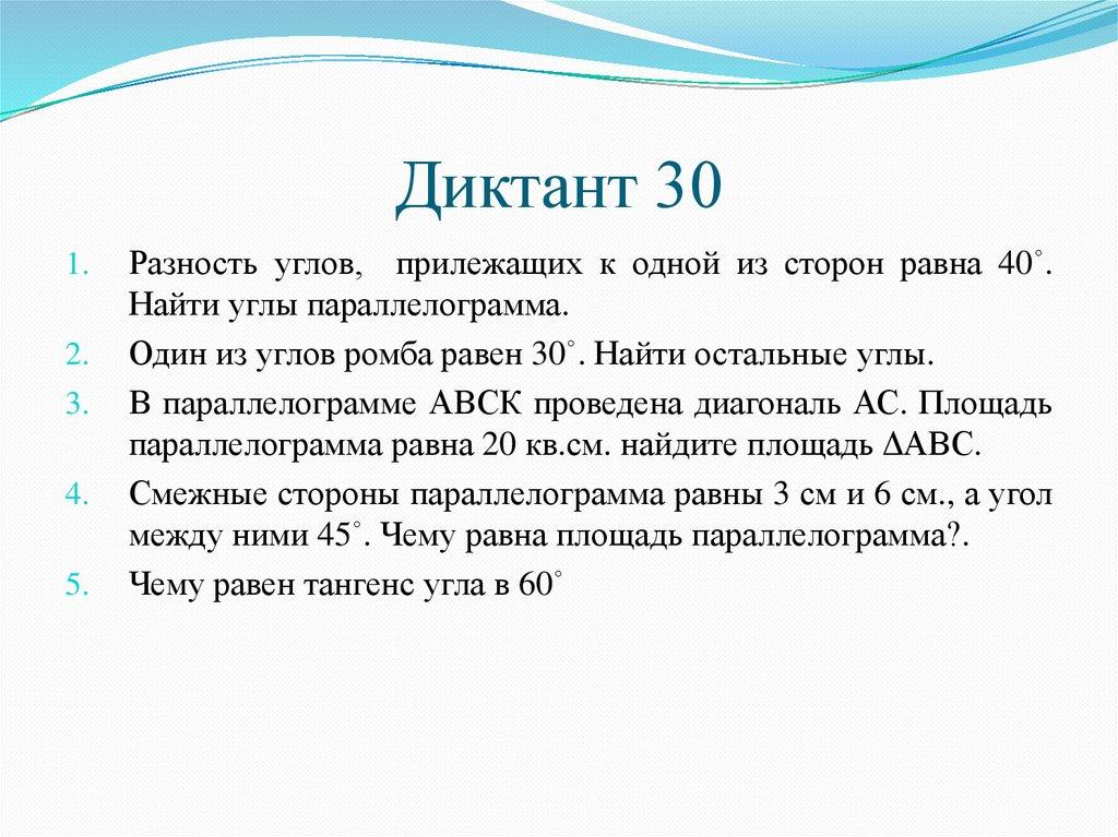 Диктант 351. Какой угол образуют между собой биссектрисы двух