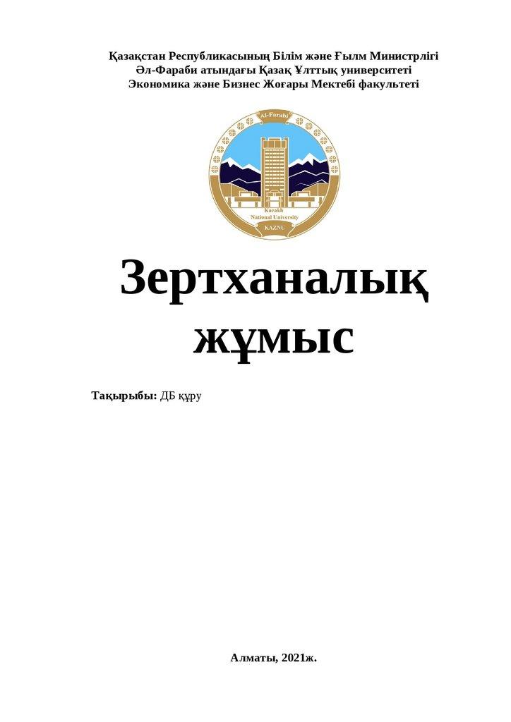 Қазақстан Республикасының Білім және Ғылм МинистрлігіӘл-Фараби атындағы Қазақ Ұлттық университеті