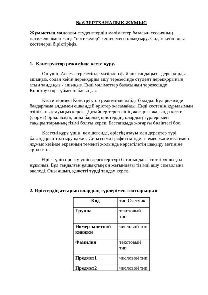 № 6 ЗЕРТХАНАЛЫҚ ЖҰМЫСЖұмыстың мақсаты-студенттердің мәліметтер базасын сессияның