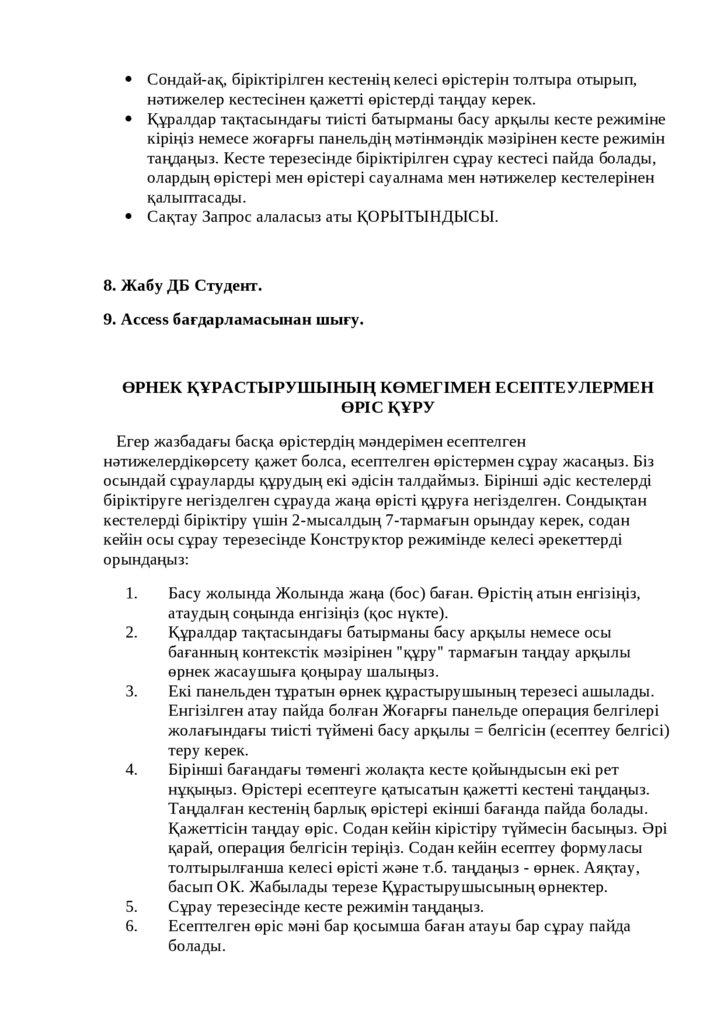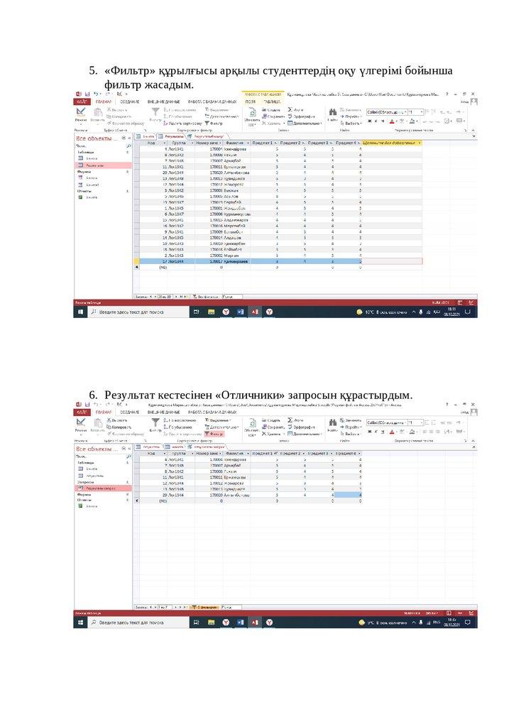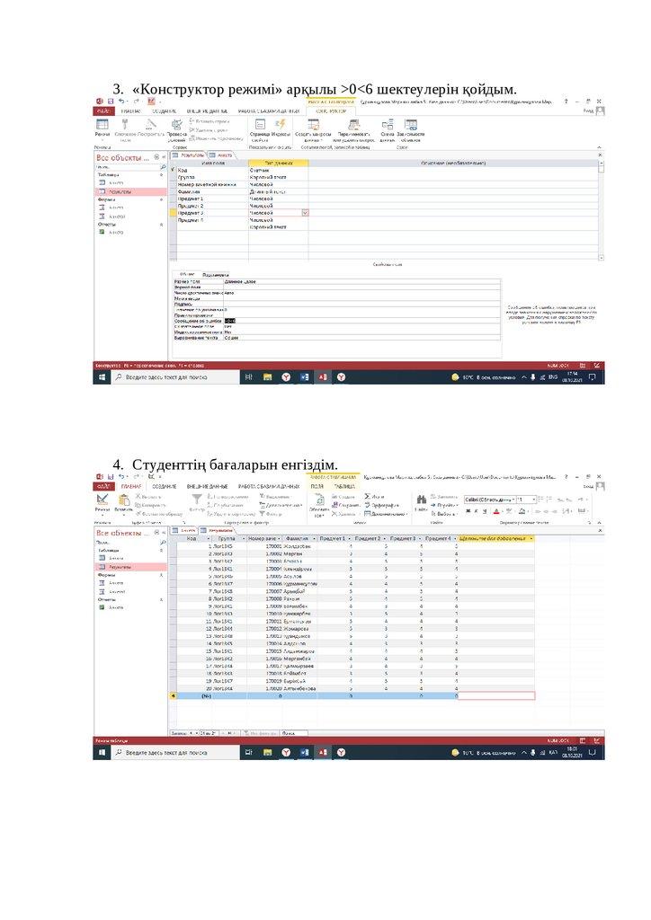 Зертханалық жұмыс-6 орындалу барысындаMicrosoft Access