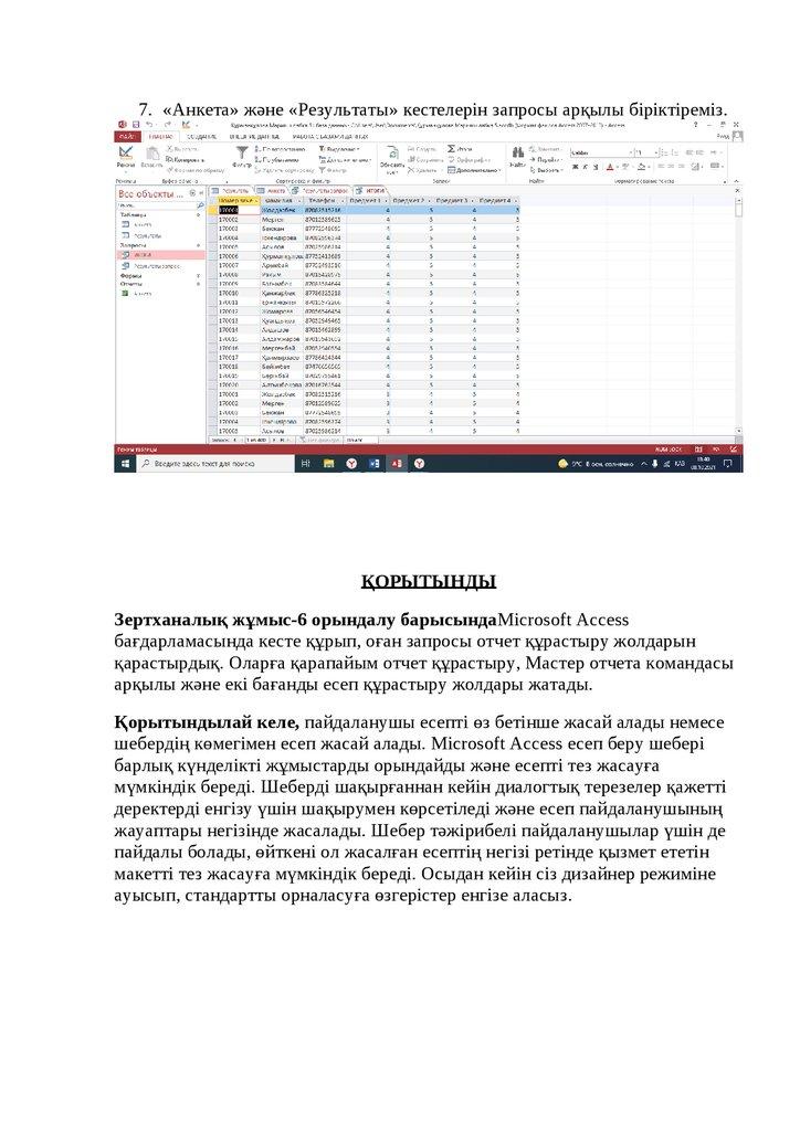 7. «Анкета» және «Результаты» кестелерін запросы арқылы біріктіреміз.ҚОРЫТЫНДЫ