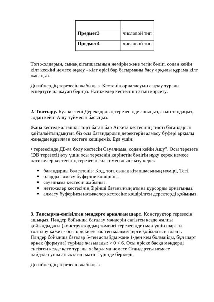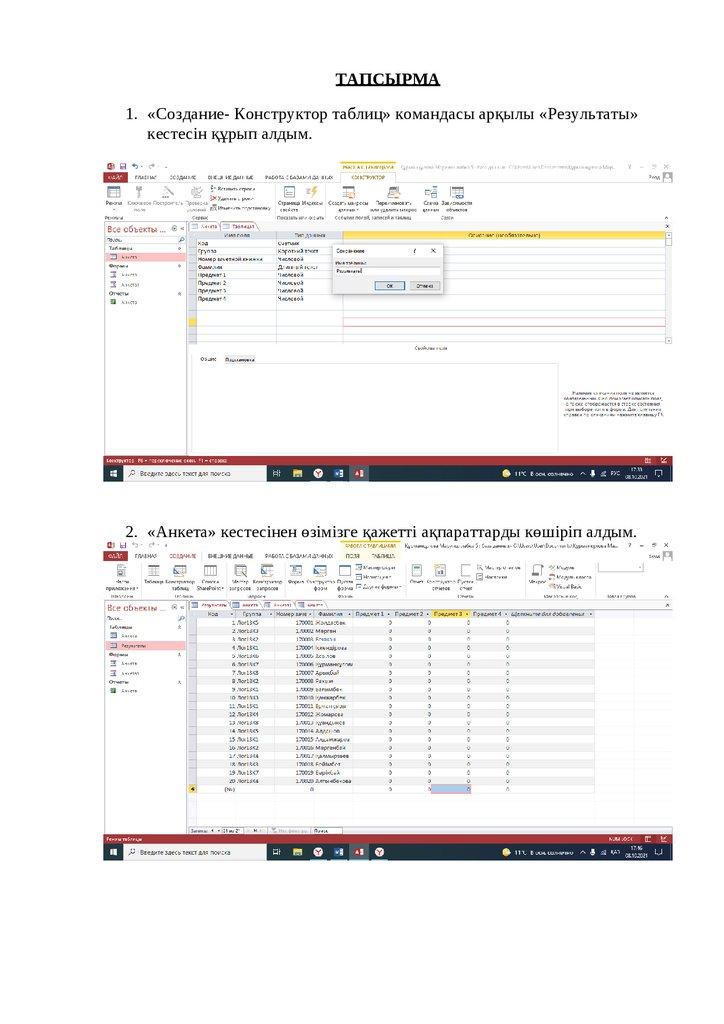 ТАПСЫРМА1. «Создание- Конструктор таблиц» командасы арқылы «Результаты»
