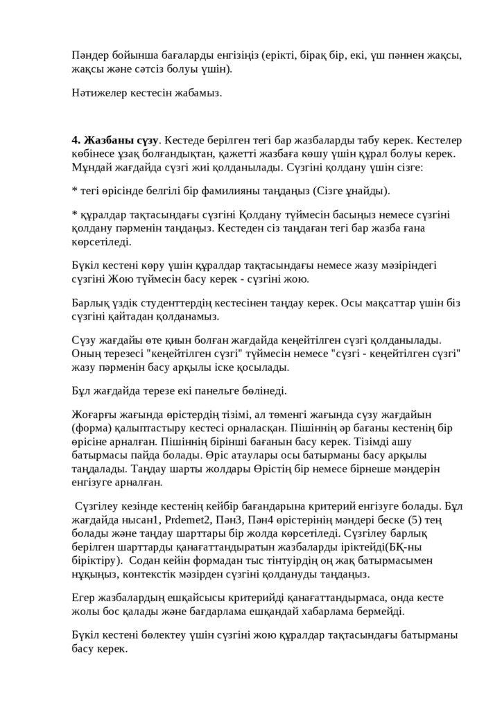 Сүзгілеу кезінде кестенің кейбір бағандарына критерий енгізуге болады. Бұл