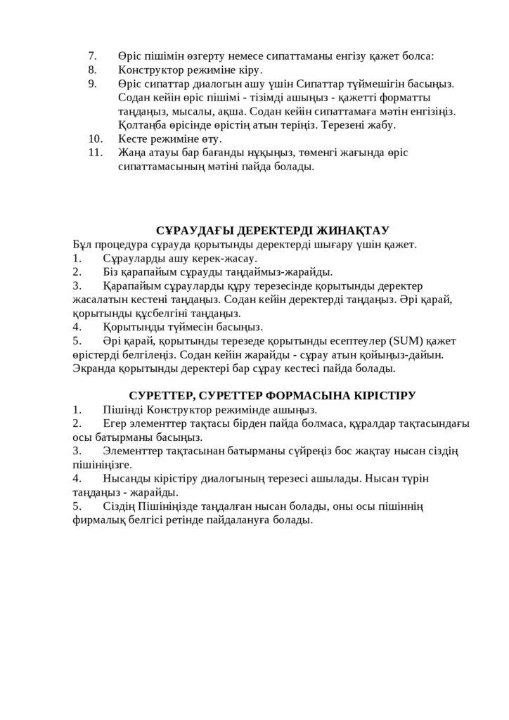 бағдарламасында кесте құрып, оған запросы отчет құрастыру жолдарын
