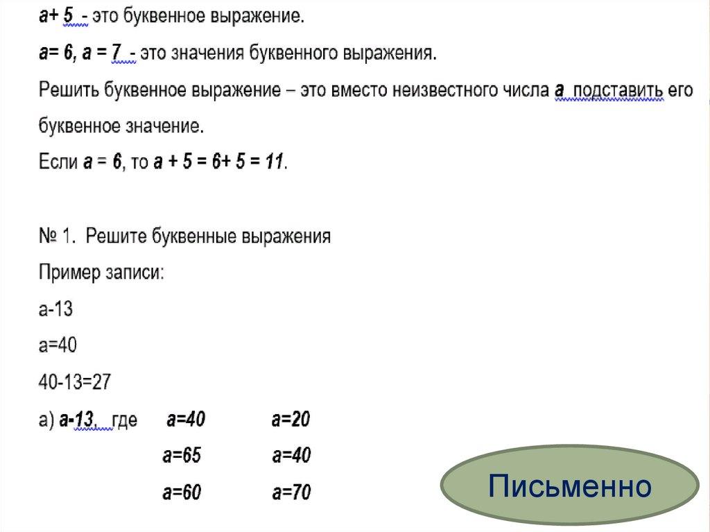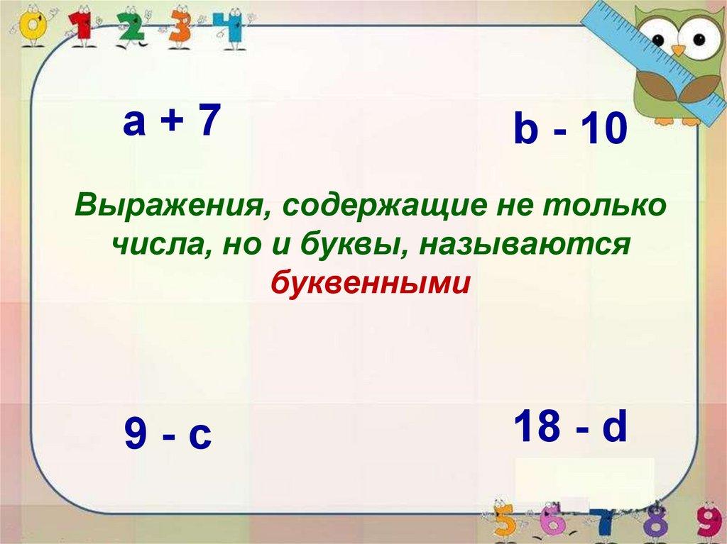 Буквенные выражения. 2 класс