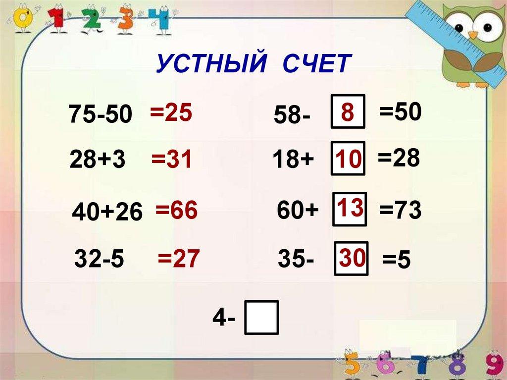 УСТНЫЙ СЧЕТ8 =50