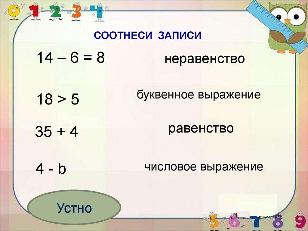 СООТНЕСИ ЗАПИСИ14 – 6 = 8