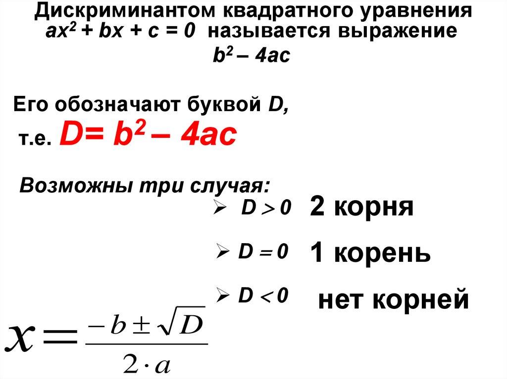 Дискриминантом квадратного уравненияах2 + bх + с = 0 называется выражение