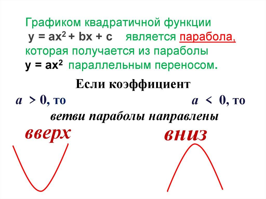 Графиком квадратичной функцииу = ах2 + bх + с является парабола,