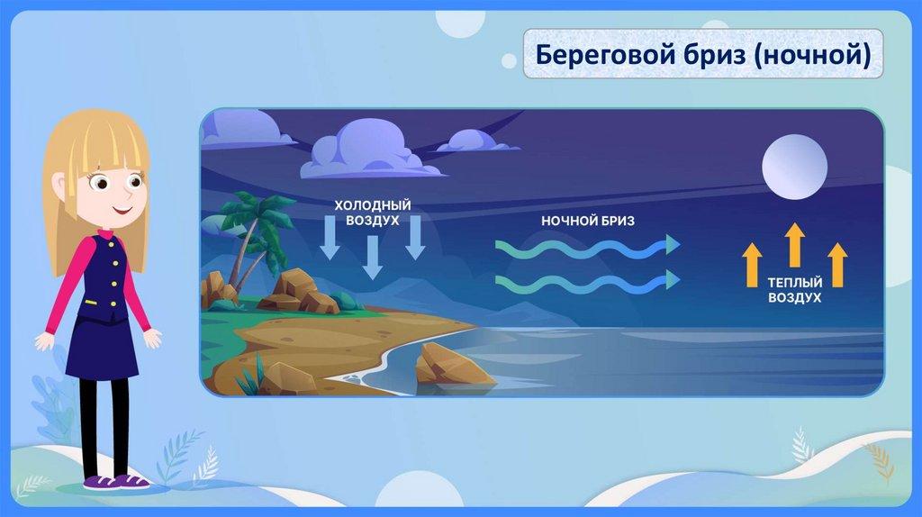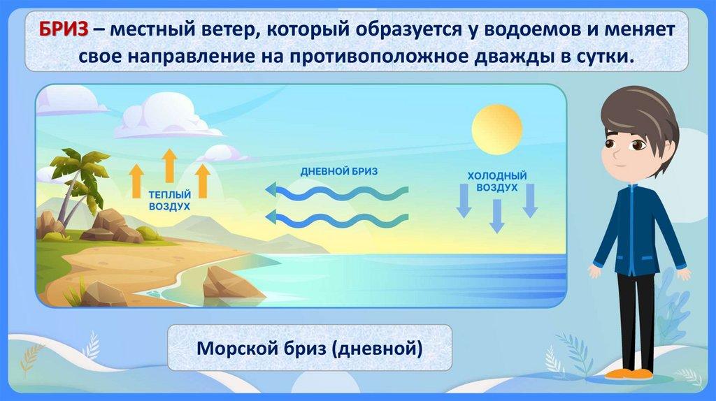 БРИЗ – местный ветер, который образуется у водоемов и меняетсвое направление на противоположное дважды в сутки.