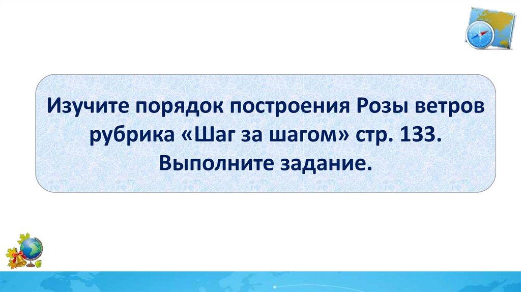 Изучите порядок построения Розы ветроврубрика «Шаг за шагом» стр. 133.
