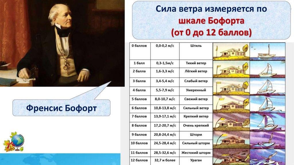 Сила ветра измеряется пошкале Бофорта