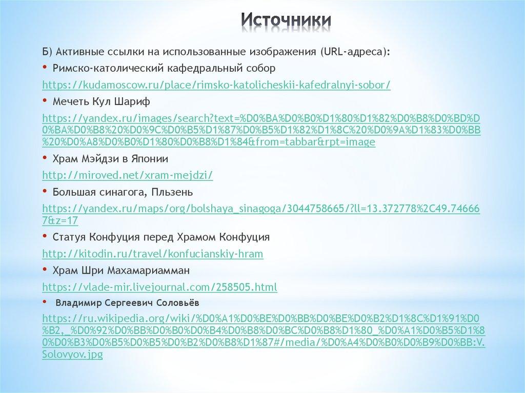 Б) Активные ссылки на использованные изображения (URL-адреса):
