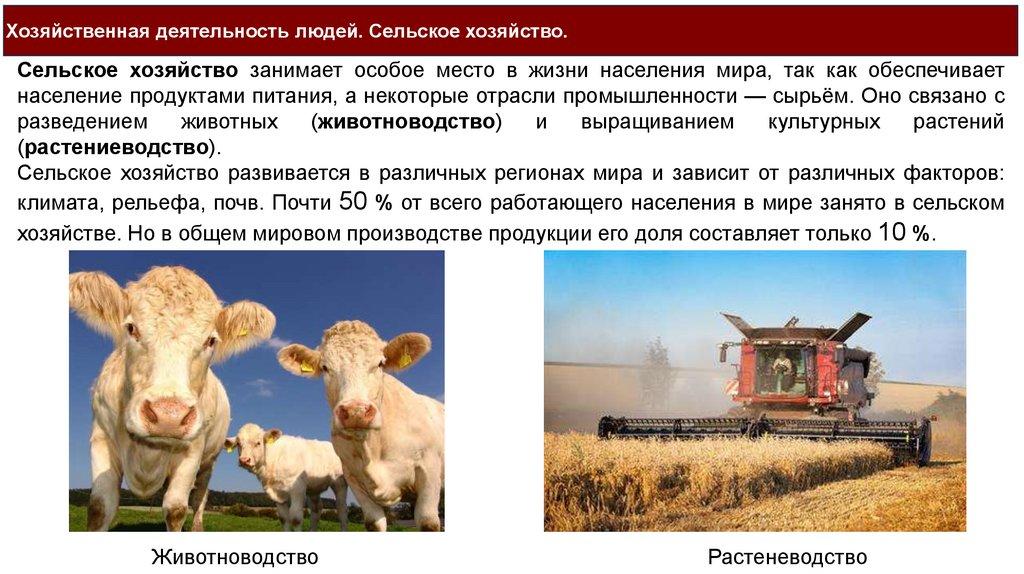 Хозяйственная деятельность людей. Сельское хозяйство.Сельское хозяйство занимает особое место в жизни населения мира, так как обеспечивает